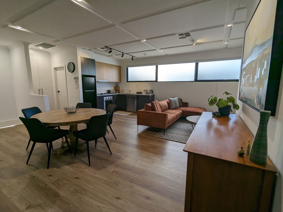 Relaxa't en aquest encantador estudi inclusiu i accessible en una granja de la vall de Barossa, a prop d'Adelaide Hills, l'històrica Gawler, a 40 minuts de la platja. Inspirada en l'herència de Barossa, mostra parets i sostres de ferro corrugat recuperats. Càlid però ampli i còmode: llit de matrimoni, cuina americana, aire condicionat i ventilador de sostre. Productes per a l'esmorzar. Rampa per a cadires de rodes, portes amples. Vistes de la vinya, la natura i el jardí. Zones de pícnic, camins per fer senderisme i cellers a prop. LGBTQ+ benvingut. Perfecte per al romanticisme o un descans tranquil.