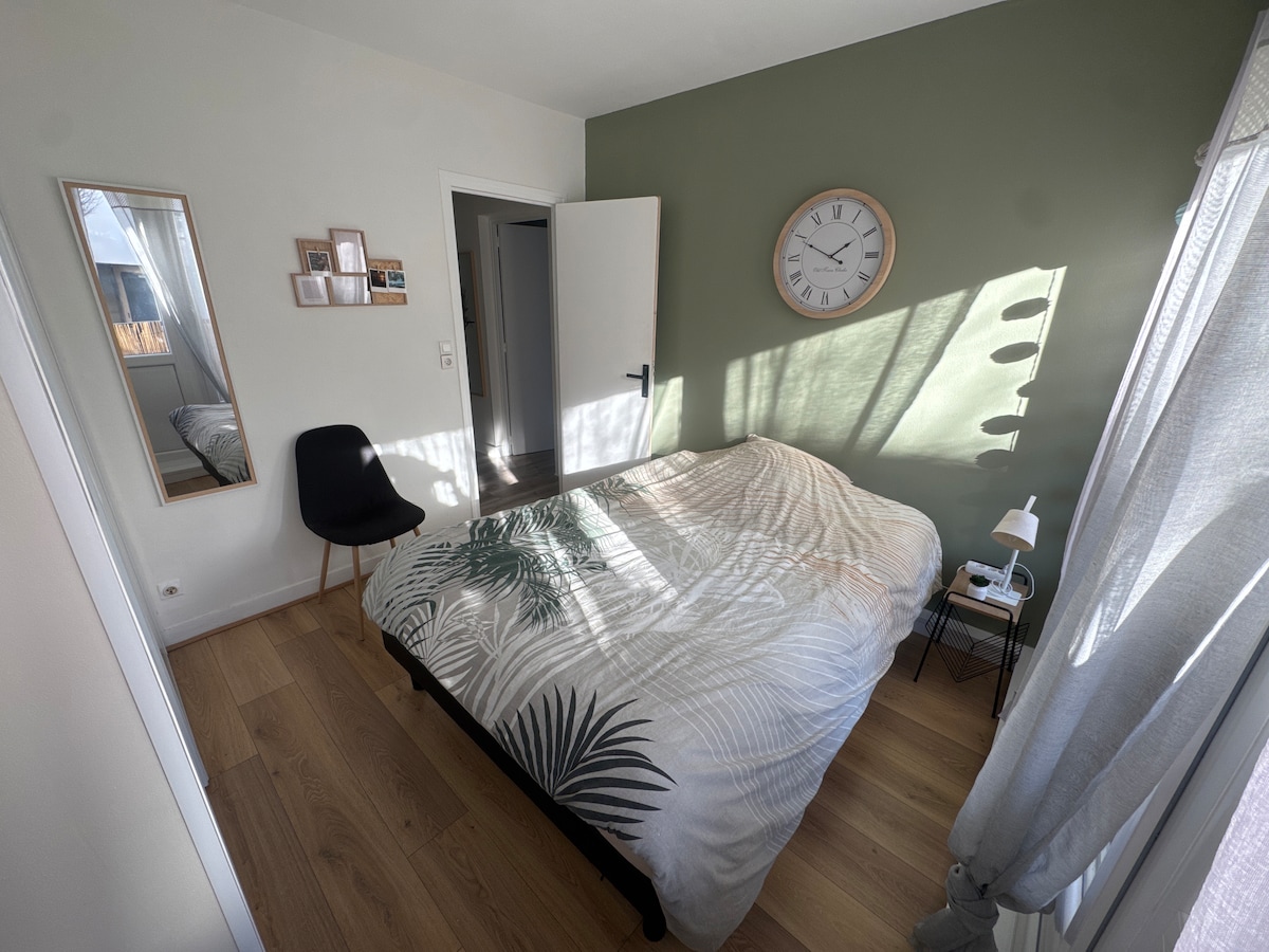 En un viatge de negocis o personal a Angers i la seva regió? Vine a allotjar-te al nostre allotjament totalment equipat, càlid i lluminós. Aire condicionat a l'estiu per a més comoditat . Gaudeix d'un entorn boscós tranquil i a prop del centre de la ciutat. Hi ha una plaça d'aparcament reservada per a tu al nostre impasse privat. Situat a la planta de l'extensió de fusta de la nostra residència, l'accedeixes per una escala i una passarel·la de fusta. No és adequat per al PRM