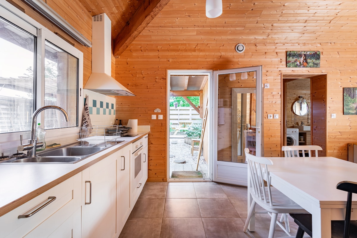Anglet: estudi recent molt lluminós de 27 m2 , jardí privat de 150 m2 tancat sense passar per alt. A prop del bosc de Chiberta. Accés a peu o en bicicleta a 10 minuts de la platja. S'ha acceptat un gos a petició si s'aprova que l'animal s'ha de registrar en el moment de fer la reserva del paquet de 15 € sol·licitat, independentment del nombre o la durada de l'estada. - GrandLIT 160, TV, vestidor , sostre de la catedral de la finestra de la badia... - rentaplats, forn,rentadora, assecadora tot el que necessites en els electrodomèstics - Llençols proporcionats