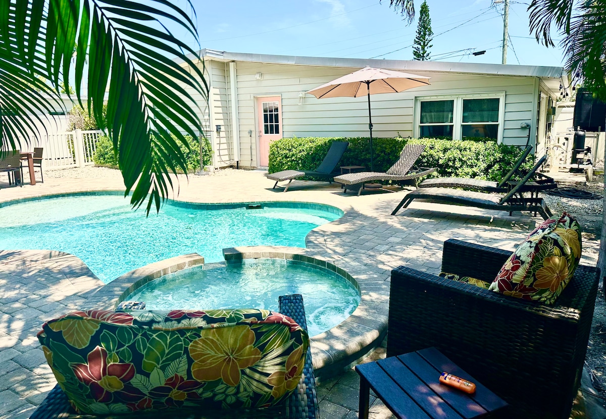 Piscina climatitzada i banyera d'hidromassatge a un oasi tropical a prop de Siesta Key