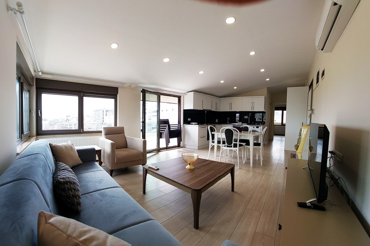 habitació airloft amb terrassa en una casa 3+1 en 4 pisos sense ascensor, al centre de la ciutat, molt a prop de l'edifici Vista Plaza (antiga Antalya 2000), hadrianus gate (kalekapısı- kaleiçi) Oldtown i Antalya High School. La sala d'estar, la cuina i el bany són compartits.