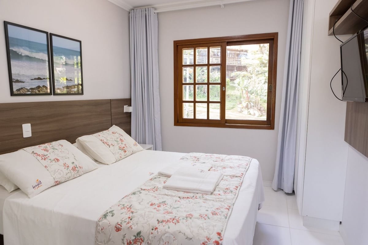 Apartament amb jacuzzi privat/climatitzat i magnífiques vistes al mar, jacuzzi i hamaca al balcó. Cuina completa (fogons, nevera, microones, cafetera, torradora i altres estris bàsics) La propietat disposa d'un gran pati, barbacoes i piscina (compartida). Una plaça d'aparcament gratuïta. Està situat en una regió tranquil·la. Estem a prop de les platges: Sepultura, Lagoinha i Retiro dos Padres (5 minuts a peu) I estem a uns 15 minuts a peu del centre de Bombinhas.