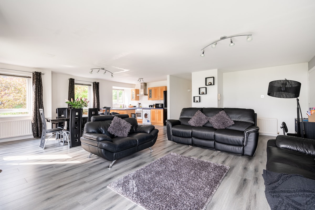Certificat per Discover NI. Situat al centre d'Irlanda del Nord, un apartament modern i còmode a la planta baixa. A 7 minuts de l'aeroport internacional de Belfast, però prou lluny de la ruta de vol, a 20 minuts del centre de la ciutat de Belfast i dels ports de ferri, i a menys d'1 hora en cotxe de la famosa Calçada del Gegant i altres atraccions turístiques. Descomptes per a la reubicació/feina.