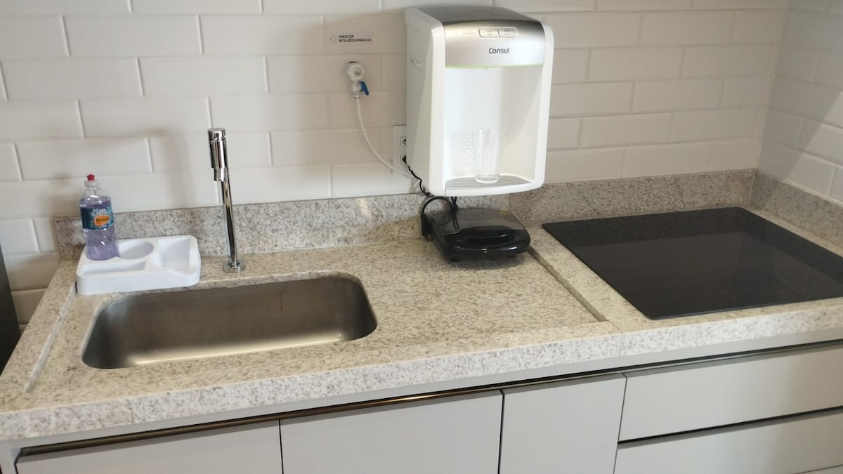Apartamento novo, confortável e totalmente climatizado, moderno, e com móveis planejados, acabamento de alto padrão e decoração contemporânea. • 2 quartos climatizados (sendo 1 suíte) • Sala ampla com sofá cama • TV smart • Cozinha completa e equipada + mesa de jantar para até 6 pessoas • 2 varandas privativas • Wi-Fi rápido • Maquina de lavar e secar • Roupa de cama e banho de alta qualidade • Cafeteira elétrica • Itens de higiene • 1 vaga de garagem coberta