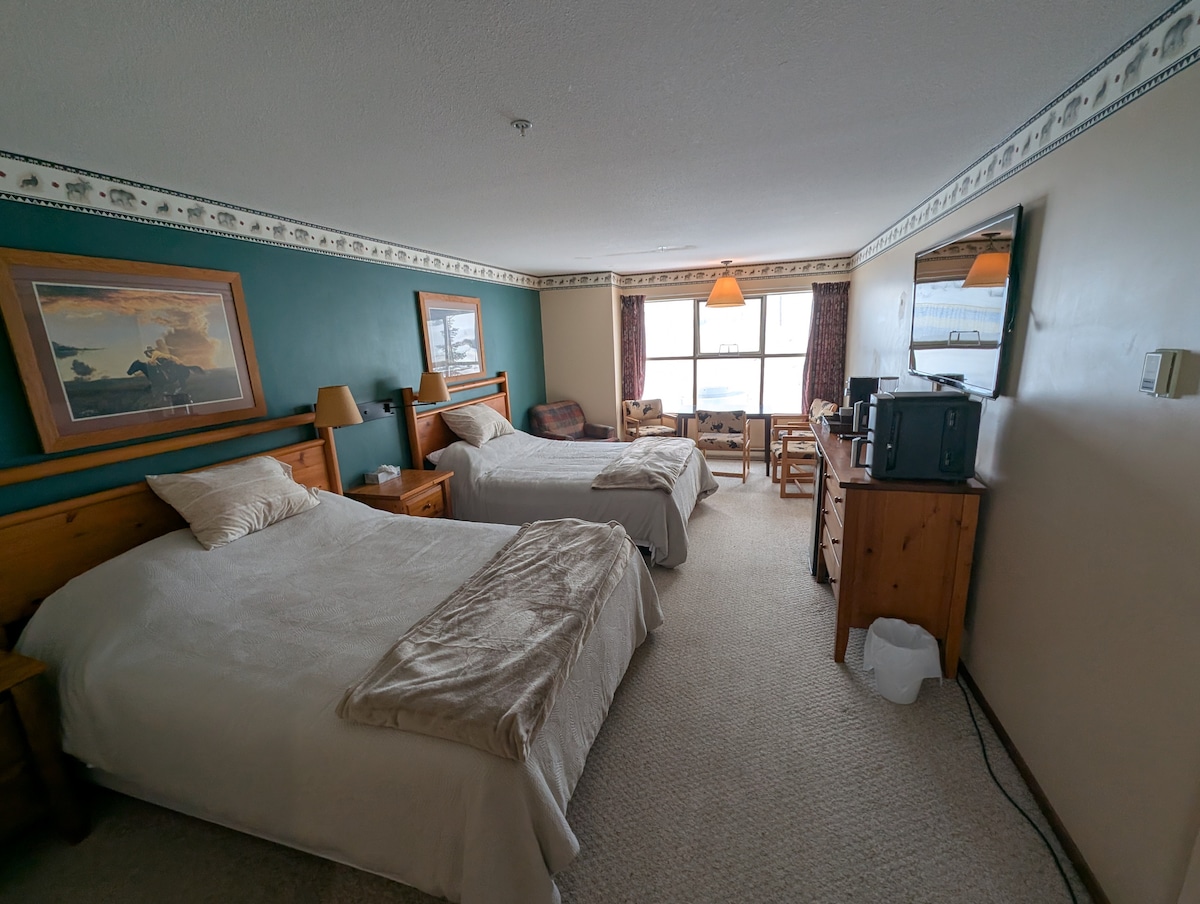 Porta la família i gaudeix d'una escapada de muntanya divertida seguint el rastre de l'avi! Aquesta còmoda suite amb 1 dormitori i accés directe a les pistes d'esquí és la base perfecta per a la teva aventura a Apex. ✨ Característiques: • Capacitat per a 4 persones (llit «queen size» + sofà plegable) • Nova banyera d'hidromassatge privada per relaxar-te després d'un dia al turó • Cuina totalment equipada perquè puguis cuinar els teus plats preferits • Sala d'estar acollidora amb llar de foc i televisor intel·ligent • A pocs passos dels remuntadors, els senders i la diversió del poble!