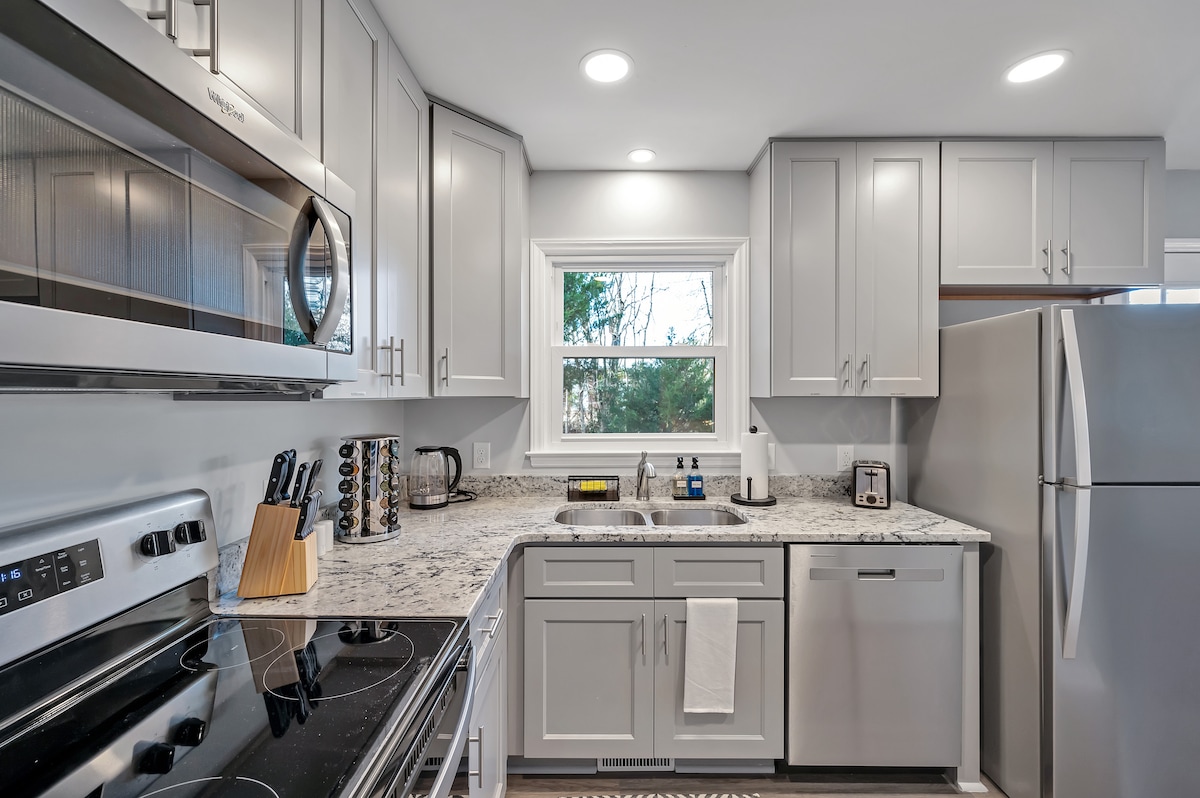 Vine a allotjar-te al centre de Cary a la nostra casa acollidora però elegant que està tan a prop de tot, és ridícul! Vine a relaxar-te al sofà i mira els teus programes preferits a la televisió que també funcionen com a obres d'art. Tenim fibra per a totes les teves necessitats de streaming i de feina. El disseny de l'allotjament és una cosa que ens encanta, però l'hospitalitat és la nostra veritable passió. Volem que et sentis com en família. Sigui el que necessitis, t'oferim! **Cobrem una tarifa separada de 30 $ per animal de companyia i per nit DESPRÉS de fer la reserva. 🐩 Consulta les normes de la casa per obtenir més informació.