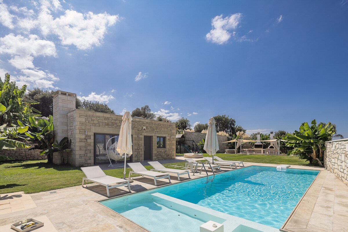 Villa Pavlina és una joia recentment restaurada situada al pintoresc poble de Damavolos, situat a la serena campanya cretenca. A només 20 minuts de l'encantador assentament costaner i de les platges de Panormos, aquesta acollidora vil·la ofereix una oportunitat única per submergir-te en la vida tradicional. Gaudeix de total privacitat mentre gaudeixes d'unes vistes impressionants de la natura i dels oliverars que l'envolten, per la qual cosa és el refugi perfecte per gaudir d'una experiència tranquil·la i autèntica.