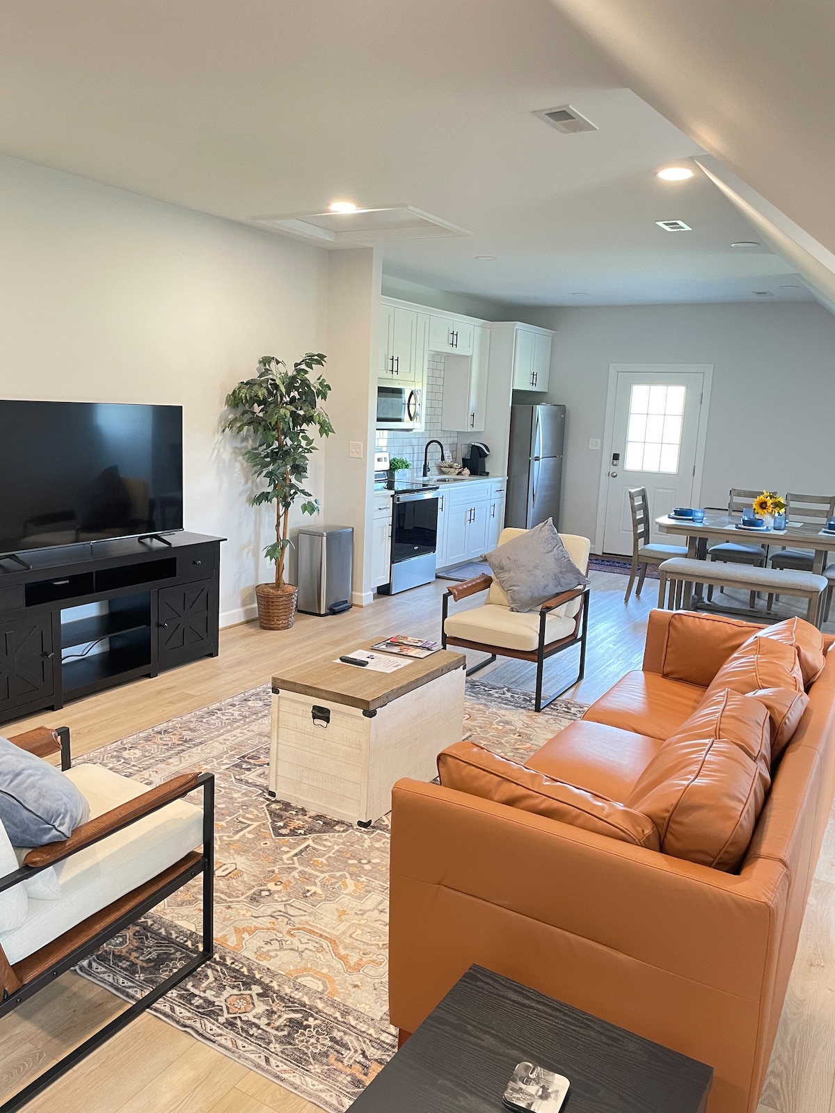 Escape to a unique private retreat on the James River! This listing includes two homes—a charming cottage and a modern tiny house rented together for your exclusive use. Perfect for a family or two couples, it features a large deck with a private hot tub, grill, and stunning river views. Enjoy fishing, floating, and total relaxation in a one-of-a-kind setting that comfortably accommodates your group. It's close to many breweries, wineries, & parks. It is about 30 mins from Lynchburg & Farmville.