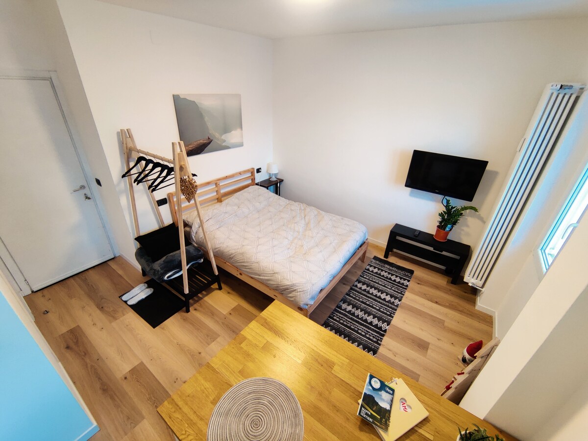 Encantador pis estudi, completament reformat en estil nòrdic, molt lluminós, espai únic amb llit de 140 x 200 cm, cuina amb illa, bany amb vàter, bidet i dutxa. TV Hd, wifi i detector de fum presents. Situat en una zona tranquil·la a un minut a peu de les pistes d'esquí de la Magnolta i de la piscina comunitària i a 1 km del centre d'Aprica. Aparcament gratuït davant de l'entrada