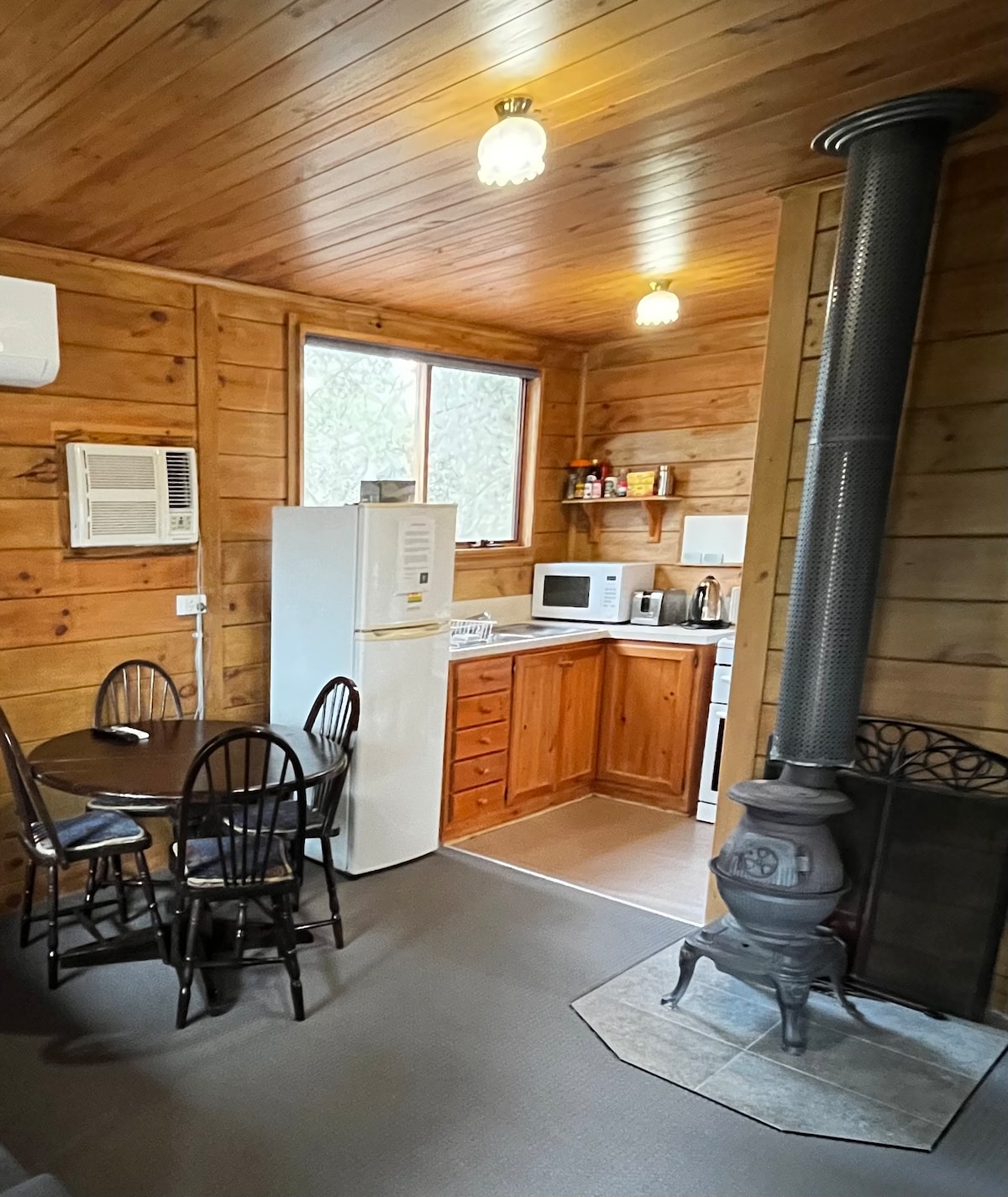 Descobreix la serenitat en una acollidora cabana rústica de troncs envoltada de pins, a només tres quilòmetres de Dimboola, al riu Wimmera, convenientment situada a mig camí entre Adelaide i Melbourne. Perfectament situat a l'entrada del Parc Nacional de Little Desert, ofereix una base ideal per explorar la zona. Gaudeix de les nits al voltant d'una foguera sota un cel ple d'estrelles, torrant dolços i desperta't amb els sons tranquils de la natura, cosa que fa que sigui un refugi veritablement restaurador lluny de la teva vida ocupada.