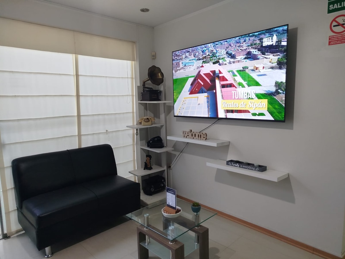 Et donem la benvinguda al nostre pis a Chiclayo - La Victoria. Estem situats en una de les zones més boniques i segures de Chiclayo. A 5 minuts de l'aeroport, Real Plaza i el centre de la ciutat, a 2 blocs del Jockey Club i a poca distància de Smart Fit i dels millors restaurants. Tenim un llit Drimer QUEEN a l'habitació. Tindràs accés a wifi, a la sala d'estar tenim un televisor intel·ligent i Netflix. La cuina està equipada i totalment proveïda de vaixella. Soc aquí per ajudar-te amb tot el que necessitis. Esperem veure't aviat!