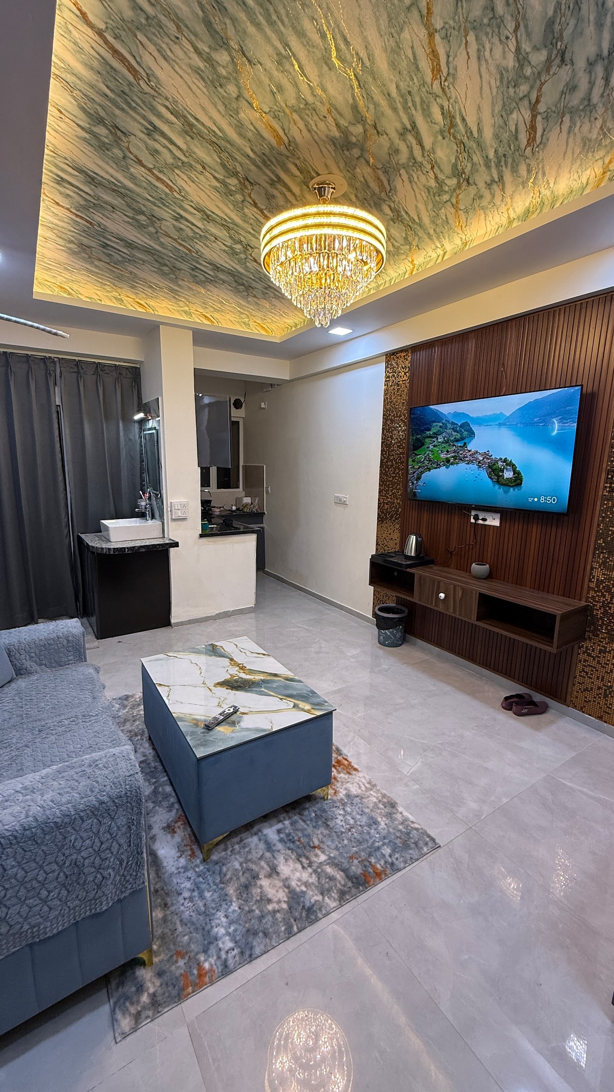 Et donem la benvinguda al nostre petit i acollidor apartament estudi situat al cor de Bani Park, Jaipur. Perfecte per a parelles o professionals que treballen, aquest pis dissenyat amb cura disposa d'una cuina totalment equipada, un bany annex i un espai de treball per fer-lo ideal per a estades llargues. L'apartament ofereix comoditat i comoditat a poca distància a peu de Railway Statn i fàcil accés a llocs turístics populars i als principals mercats de la ciutat. Un lloc perfecte per explorar la Ciutat Rosa mentre et sentis com a casa!