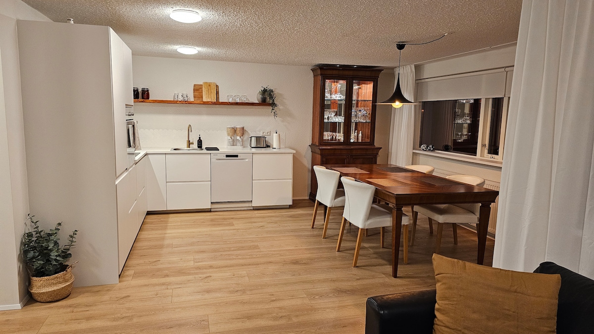 Gran pis estudi recentment reformat amb entrada privada per a dos en un barri apte per a famílies. 35 metres quadrats amb un llit queen size (160x200cm), cuina nova i bany nou. Accés ràpid al centre de la ciutat (15 minuts en cotxe), fàcil accés a les carreteres principals i al barri tranquil. Hi ha supermercats no gaire lluny i una piscina local amb banyeres i sauna. La parada d'autobús està a només 1 minut. A prop d'excel·lents senders naturals amb llacs, rius i espais oberts.
