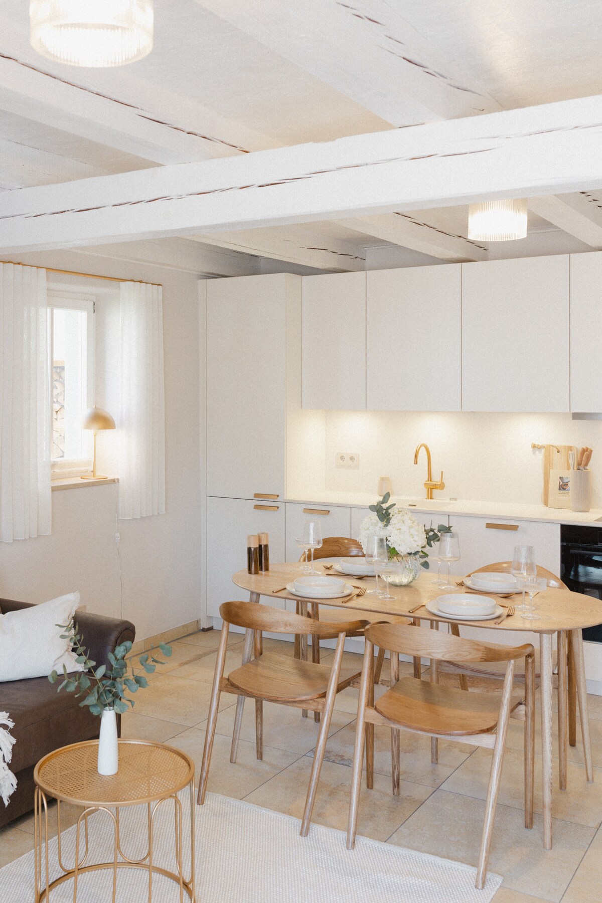 Aquest ampli estudi impressiona amb la seva estructura de sostre exposada, que crea un ambient molt acollidor. Hi ha ventilació permanent a la casa de fusta. Al dormitori, un gran llit d'aigua (2 m x 2,20 m) garanteix una bona nit de son. La propietat ha estat moblada individualment amb cura. La cuina és petita però magníficament equipada. Fer una barbacoa i prendre el sol al jardí. Estació de càrrega per a cotxes elèctrics (0,40 €/kWh) disponible, es poden demanar 2 eBikes Cube i Thule Cab2, sauna exterior nova!
