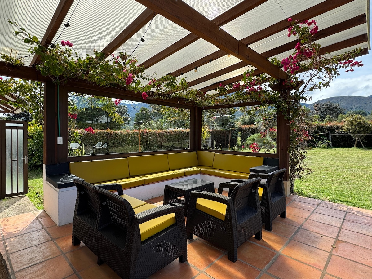 Descobreix un refugi amb encant a només 12 km de Villa de Leyva! En un entorn rural pintoresc, t'envoltaràs de paisatges fascinants i gaudiràs de passejades per llocs de gran bellesa natural. La nostra caseta és fàcilment accessible des de Bogotà o Villa de Leyva i està a només 25 minuts en cotxe de la ciutat. Ideal per a parelles, ofereix tot el imprescindible per a una estada de descans i contemplació. El 2024, renovem mobles i matalassos per garantir la teva comoditat. Vine a viure una experiència inoblidable!