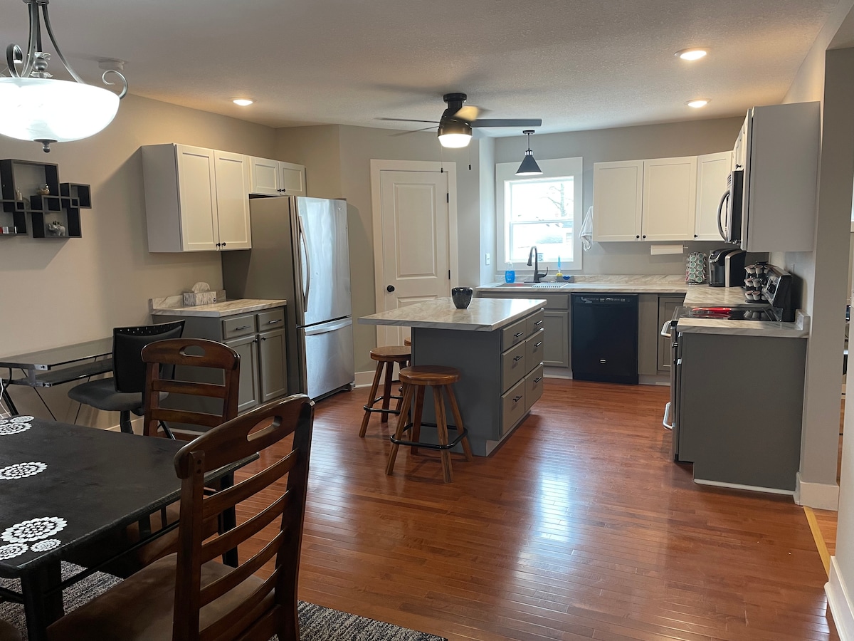 Et donem la benvinguda a The Shoe Inn! Estaràs al centre de la ciutat, a poca distància a peu de tots els llocs que necessites: sales de banquets, cinc bars, restaurants, botiga de queviures de Wessel, gelateria, església, ferreteria i parcs comunitaris. El pany intel·ligent i l'entrada sense contacte estan disponibles per gaudir d'una estada còmoda i segura. Gaudeix de la rentadora i l'assecadora de mida completa (no hi ha detergent) , la llar de foc, la cuina petita (sense fogons), l'aparcament gratuït, el televisor intel·ligent Samsung de 50"amb centenars de canals per cable, dispositiu Alexa i wifi gratuït
