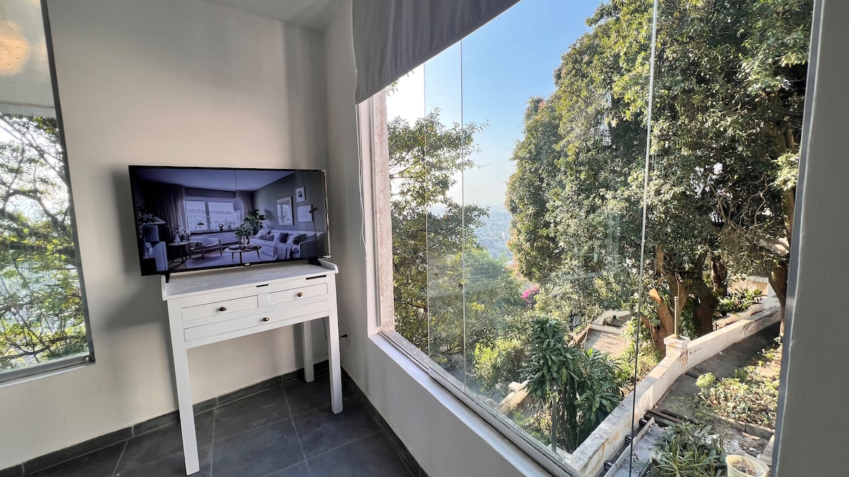 Al barri bucòlic de Sta. Teresa, en un terreny molt boscós de 1000m² en dos nivells, al fons hi ha dues unitats totalment independents que comparteixen jardí i piscina: Aquesta Ap. i l'Estudi (un altre anunci). Amb vistes a Crist (Corcovado), la muntanya i Sambòdrom (desfilades de Carnaval), estem davant de l'antiga església i al costat de la plaça familiar amb bistrots. En una mansió colonial i amb accés independent, a la part superior de l'altiplà resideixen els propietaris, sempre disponibles per ajudar-te.