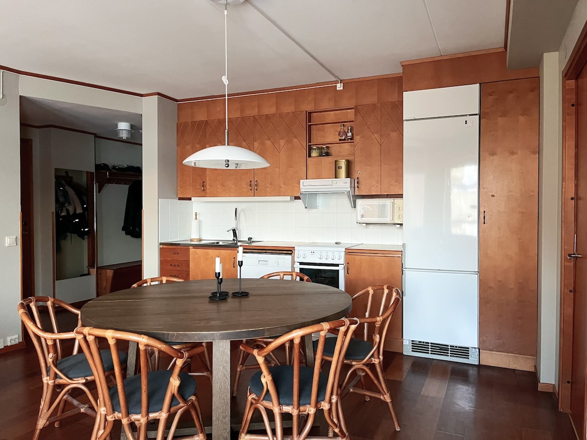 Pis de 65 m² fantàstic al bell mig del poble! A la part alta de la casa, amb vistes i balcó amb vista a Åresjön. A 250 m de l'telecadira, a 150 m del tren i a 300 m del centre de la ciutat, on hi ha restaurants i botigues. L'apartament disposa d'una plaça d'aparcament gratuïta. Aquí podràs gaudir d'Åre a la perfecció en qualsevol època de l'any, tant si vols esquiar com si vols anar en bicicleta o fer senderisme i gaudir de la natura dels voltants. Bones oportunitats per fer senderisme als voltants d'Åre. L'oferta d'oci és infinita, amb diversos restaurants bons, botigues, piscines d'aventura i espai termal per a nens i adults.