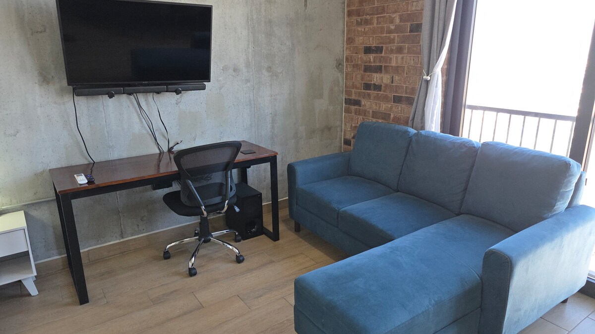Un pis tipus loft en una de les millors ubicacions del sud de la ciutat amb vistes al meravellós turó de la cadira, amb capacitat per a 5 persones, té 2 llits dobles i un sofà llit, cuina equipada, 2 balcons, un d'ells amb graella, 1 pàrquing, gimnàs i bugaderia de pagament a la 11a planta. Està molt cèntric, a prop dels principals centres comercials i botigues de queviures, així com dels centres de vida nocturna i restaurants, a 10 minuts del centre de la ciutat i del parc de la foneria.