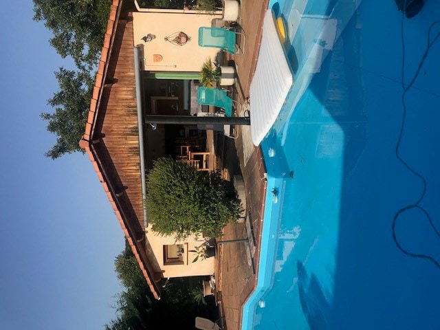 Aquest allotjament d'aprox. 50 m2 pot allotjar fins a 6 persones (1 llit de 2 persones en un dormitori individual i 1 clack a la sala d'estar + possib. matalàs inflable 2 pers.); possibilitat de 2 llits dobles addicionals ubicats al propietari per 40 €/nit/habitació) mostra un estil únic amb la seva piscina privada molt gran equipada amb un tobogà nàutic. Cuina equipada, aire condicionat, llar de foc amb barbacoa, dutxa amb pica, dutxa i vàter. Pista de petanca. Botigues i transport a prop.
