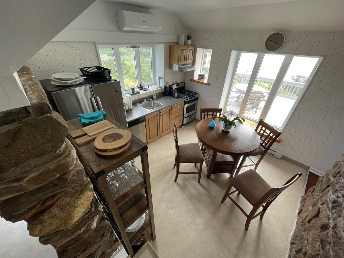 Un entorn molt tranquil i relaxant en una comunitat costanera pintoresca i acollidora. Situat en una pujada per sobre de les aigües càlides de l'estret de Northumberland, en una badia tranquil·la amb espectaculars amanides i postes de sol, diversió a l'oceà just al costat del pati. Gaudeix de les foques, garces, àguiles, àguiles, ocells i molt més. Un disseny ben pensat que utilitza talent artesanal local, amb electrodomèstics de primera línia, acabats, serveis, llençols i molts extres. Ideal per a quadres d'esquí i pesca amb gel per a tota la temporada. Només necessites la teva maleta!