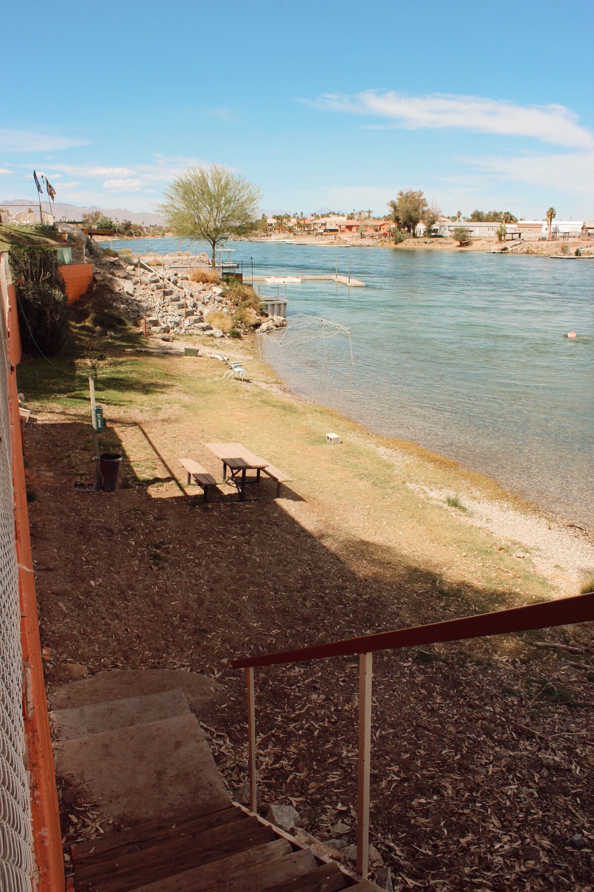 CASA A PRIMERA LÍNIA DE MAR amb platja privada i accés al moll. Totes les millores que necessites per a una casa a curt o llarg termini lluny de casa teva. Preciós 3 dormitoris/2 banys més la sala té 2 neveres, rentadora/assecadora de càrrega frontal, taulells de granit i barbacoa de gas exterior. A uns passos de l'aparcament per a hostes/vaixells i del camp de golf públic. A prop del port esportiu d'agulles i del llançament del vaixell Jack Smith. A poca distància en cotxe de Laughlin, Pirate Cove, Havasu i Avi. La reserva requereix completar el formulari de l'associació de propietaris. Envia un missatge a l'amfitrió per consultar les tarifes de descompte per a estades llargues i per a ocells de