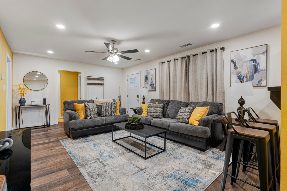 Relaxa't en aquest allotjament tranquil i cèntric de 4 dormitoris i 2 banys. ** Nova zona de foguera i hamaca** Ideal per a famílies i equips de treball, aquest allotjament ofereix un munt d'aparcament, un pati privat amb una terrassa, una barbacoa i un fogar. Gaudeix d'un parc acollidor amb un parc infantil i barbacoes a unes illes de distància. A l'interior, hi ha una cuina totalment equipada, amb una barra de cafè, cafè mòlt, crema, salsa i xarop. Porta les teves càpsules de cafè preferides per gaudir de la màquina Keurig. Els restaurants, les cafeteries i la vida nocturna del centre estan a només 5 minuts en cotxe!