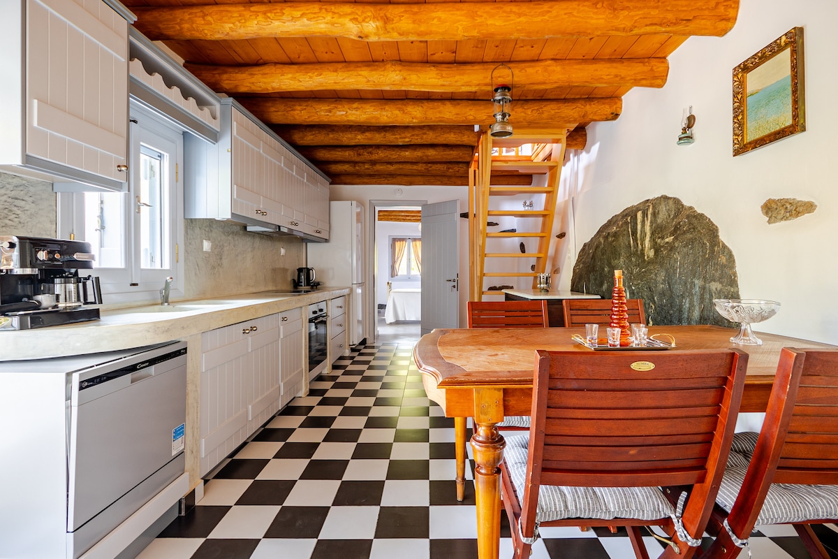 Casa rural amb estil i totalment equipada just davant de la platja d'Armenistis. Té cabuda per a 3 persones, però pot dormir fins a 5 persones (veure la descripció a continuació). Magnífica vista al mar, excel·lent ubicació. A només 1 minut a peu de la platja de sorra, restaurants, bars, cafeteries, supermercats, botigues de records. A 2 minuts en cotxe de la platja de Messakti & Livadi, a 10 min. de Christos Raches, a 20 min. del port d'Evdilos, a 75 min. de l'aeroport.