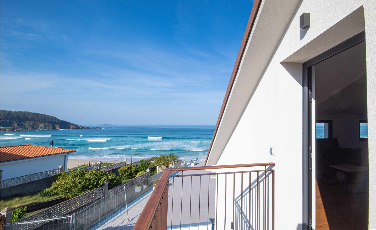 Pis modern amb vistes al mar, situat a primera línia de platja de Razo. Amb aparcament privat gratuït. Té un jardí compartit amb els altres apartaments. El pis està situat a la planta superior amb accés directe des del jardí. Hi ha escales. Tens vistes al mar. El pis és de tipus estudiat i té 1 habitació oberta amb llit de matrimoni, un sofà habitació per a 2 persones, cuina completa i bany amb dutxa. La cuina està totalment equipada amb nevera, placa de vitroceràmica, microones, rentaplats, estris de cuina, plats i cobertura. També disposa de rentadora.