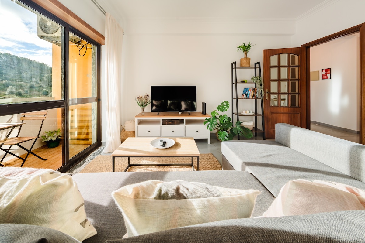 Un apartament de dos dormitoris d'estil modern acabat de renovar amb unes vistes espectaculars de l'oceà Atlàntic i el pintoresc poble de Nazaré i els seus turons, situat a Sitio, a un pas del Big Wave Lookout, així com del poble de Nazaré i les seves platges, ja sigui veure sortir el sol amb un cafè o la posta de sol amb una copa de vi al balcó, quedaràs fascinat pel teu entorn. El pis és perfecte per a parelles i famílies de vacances, treballadors a distància, estades llargues