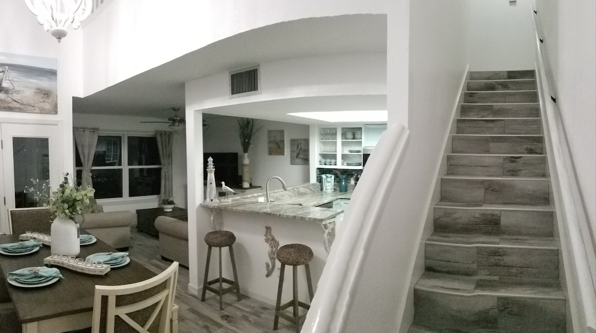 Gaudeix d'una experiència de luxe en aquesta casa rural cèntrica. Gaudeix de la teva estada en aquesta casa rural 2BR/2BA recentment remodelada. Televisor de pantalla gran, nevera amb màquina de gel, cafetera keurig. Electrodomèstics nous, rentadora i assecadora. 1 llit «king size» i 1 llit «queen size». A prop de la piscina i dels serveis. Gaudeix de la pesca i el caiac al moll del darrere. Fes una graella al pati mentre gaudeixes de les precioses vistes. Piscina, pistes de tennis, pistes de pickle ball, gimnàs, golf i altres activitats a una illa de distància. És fàcil anar a peu a tot.