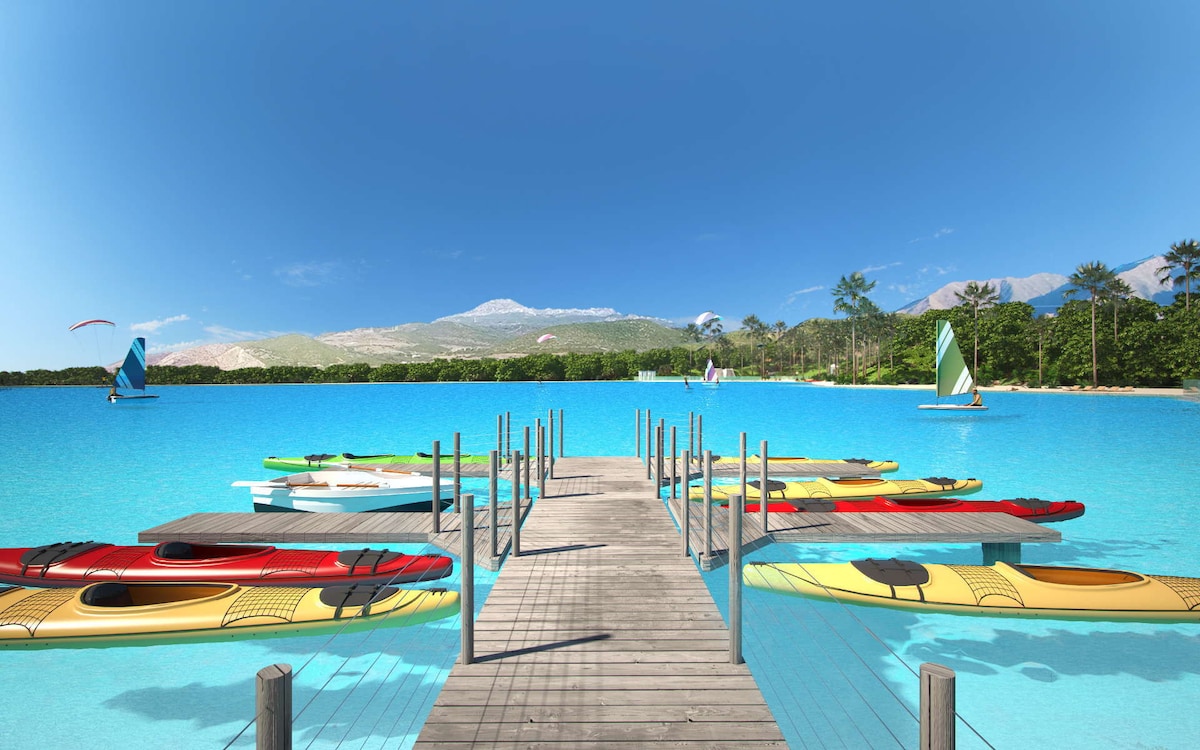 Luxurious 2-bedroom apartment in the exclusive Alcazaba Lagoon Resort near Estepona & Marbella. With sea views, workspace and lagoon access & facilities included. ✔ Sea, pool & garden views from the spacious balcony ✔ Private owners’ beach with watersports all facilities included ✔ Dedicated workspace + 600 Mbps fiber (WiFi & ethernet) ✔ Fully equipped kitchen + baby high chair ✔ 2 bathrooms with bathtub + shower option ✔ Free street parking in front of the building ✔ Near Estepona Golf