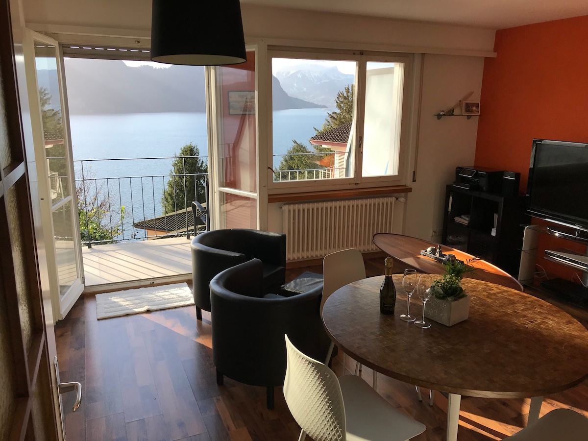 Preciosa ubicació al costat del port esportiu. Gaudeix d'una vista impressionant del llac de Lucerna i de postes de sol increïbles des d'aquest apartament de luxe completament remodelat al costat del llac, dormitori amb dues portes de vidre dobles amb accés directe a la gran terrassa des del dormitori i la sala d'estar, televisor de pantalla plana, sistema de so Sonos, altaveu Bluetooth, sistema d'il·luminació modern, cuina d'alta especificació, nevera gran, rentaplats, forn, vaporitzador, persianes elèctriques, calefacció sota terra, aparcament gratuït, ascensor.