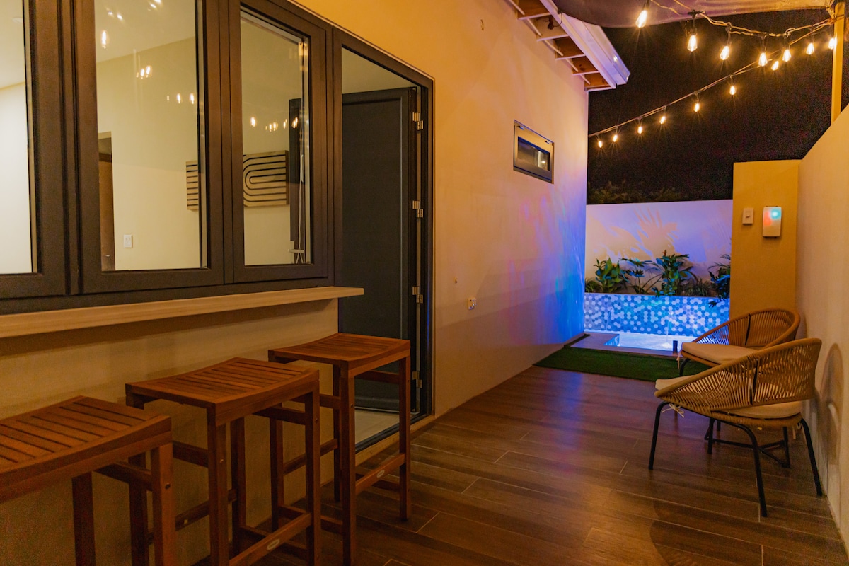 Gaudeix de l'escapada definitiva a Aruba a Island Paradise Retreats, on el luxe es troba amb la tranquil·litat. ✔Convenient aparcament gratuït Cuina petita✔ completa per preparar els àpats ✔Estigues connectat amb wifi d'alta velocitat A ✔5 minuts en cotxe de la famosa Eagle Beach ✔Gaudeix de la comoditat d'un llit king size de luxe Espai ✔obert de disseny per gaudir d'una estada còmoda S'ofereixen cadires de✔ platja, tovalloles i nevera per a la teva comoditat ✔Escapa't a un refugi a l'aire lliure amb piscina privada, barbacoa i hamaca