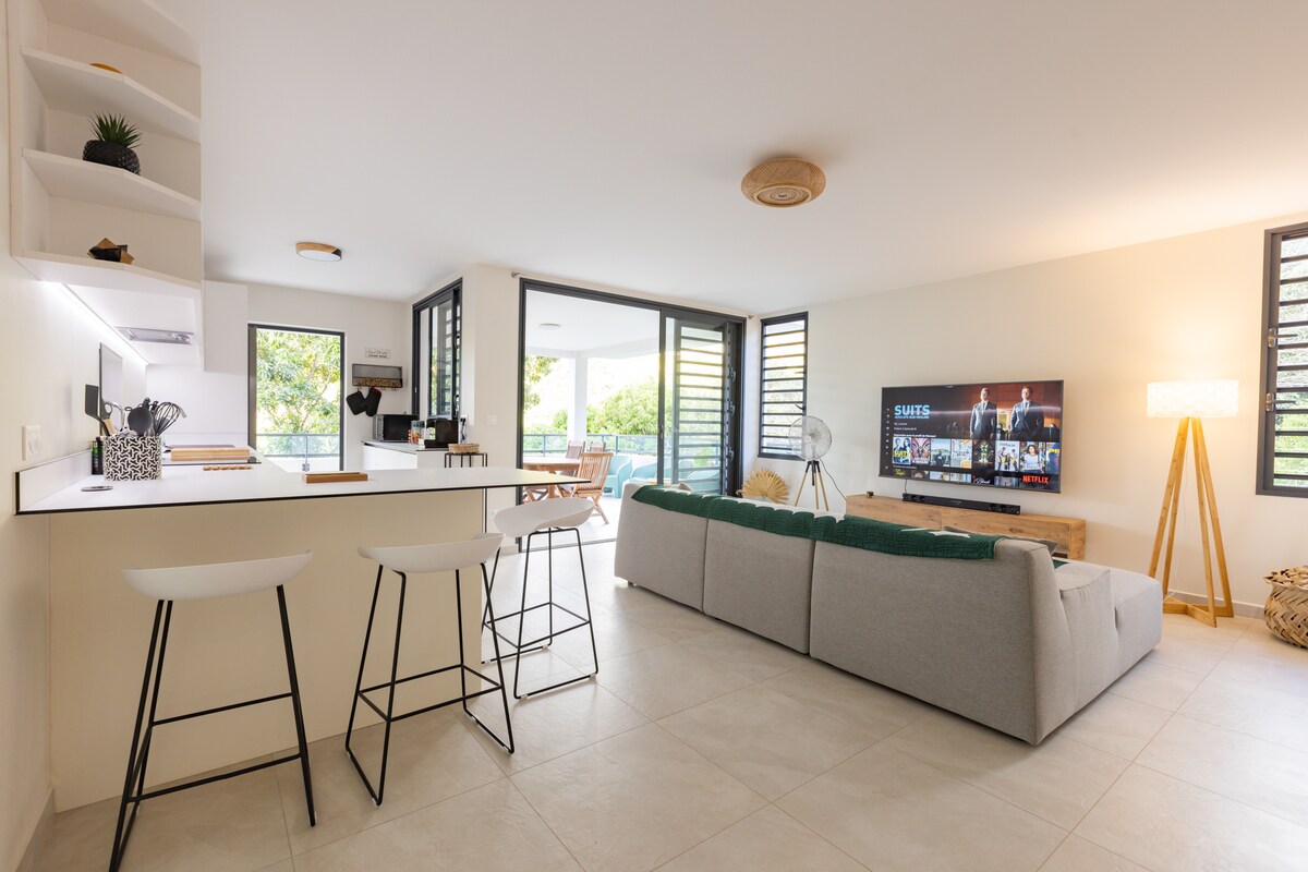 Amb una ubicació ideal a 5 minuts en cotxe de l'aeroport de TAHITÍ FAA 'A, aquest apartament de luxe de 100 m2 et farà passar una estona inoblidable a Tahití per als teus viatges de negocis o turisme. Decorat per l'empresa d'arquitectura Anapa Studio ©, aquest apartament situat al quart i últim pis d'una residència única a Tahití ofereix una vista impressionant de l'illa de Moorea. L'apartament té grans volums amb una alçada del sostre de 3m. Les habitacions tenen roba de llit de 4 estrelles. El dormitori principal de 17 m2 té un llit king size i està equipat amb un vestidor. El segon dormitori té 2 llits individuals de 90 cm /2 m que es poden separar per donar un llit «king size» individual. Tot l'equipament de l'apartament és de molt alta qualitat. Cuina totalment equipada (forn, microones, inducció, nevera de gel, rentaplats, Nespresso) TV 4K sony, sistema d'àudio SONOS, internet de molt alta velocitat, NETFLIX Rentadora, assecadora La residència es troba a 3 minuts a peu de la costa. La residència té una magnífica piscina de 20 metres de llarg. La residència també té una bonica sala de fitness amb aire condicionat totalment equipada amb equipament d'última generació. A 3 minuts a peu de la residència, el parc VAIPOOPOO ofereix una zona d'oci per a nens, llocs típics de menjar anomenats "Roulottes". PAPEETE, es pot accedir a la capital en cotxe en 10 minuts amb el RDO. També hi ha disponible un supermercat 24/24 obert 7/7 a 10 minuts a peu. Marina Taina, amb els seus restaurants i clubs de submarinisme, es troba a 10 minuts a peu. Finalment, a 5 minuts a peu, arribaràs a una delicatessen amb xampany, formatge i vi. El nostre conserge "Brice" estarà a la teva disposició durant tota l'estada per respondre a les teves preguntes. També podrà proposar, a més d'una multitud de serveis: Organització de reserves i transferències Consells, reserves i organització d'excursions, restaurants i visites per fer que l'estada sigui més agradable. Preparació del sopar a casa, etc .