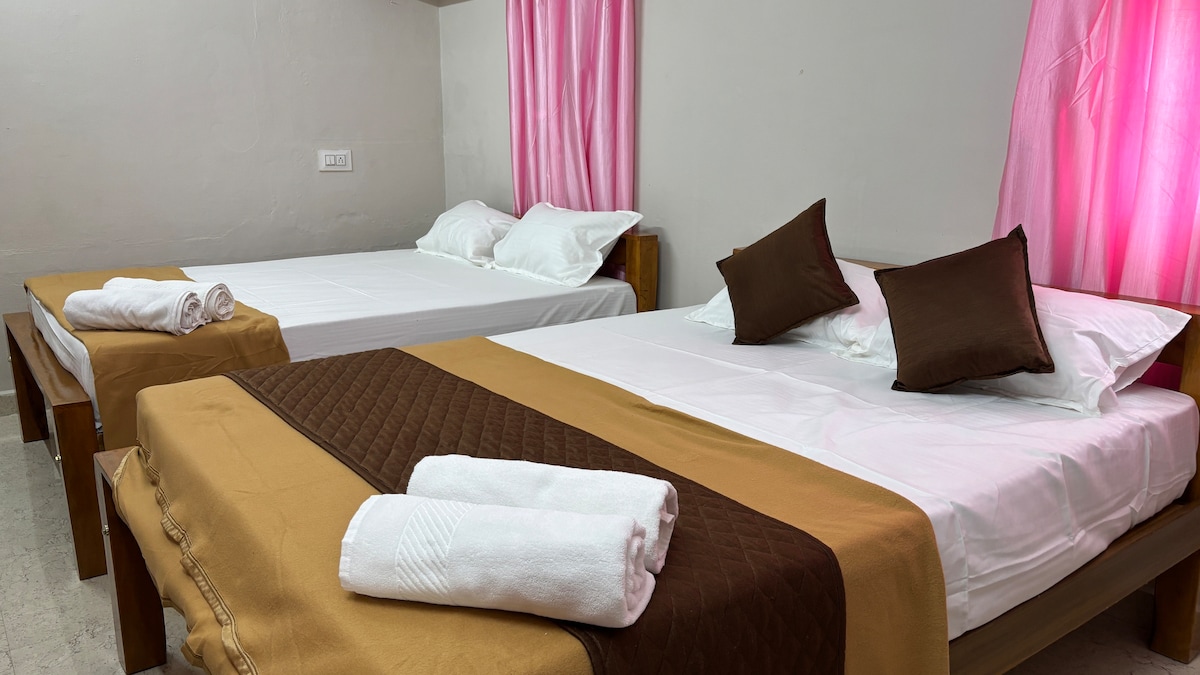 Et donem la benvinguda a l'allotjament de Sumi a Tiruvannamalai! Allotja't al nostre espaiós allotjament de la primera planta, perfecte per a famílies i amics. Wifi, llits còmodes, un bany modern d'estil occidental amb aigua calenta i una cuina totalment equipada amb UPS. Relaxa't al balcó assolellat amb vigilància de la càmera de seguretat les 24 hores. També tenim una altra propietat al mateix edifici, Preetha 's Palace and Goutham' s Castle, un 2 BHK amb habitacions amb aire condicionat. airbnb.com/h/preethaspalace airbnb.com/h/gouthamcastle Reserva la teva estada avui mateix!