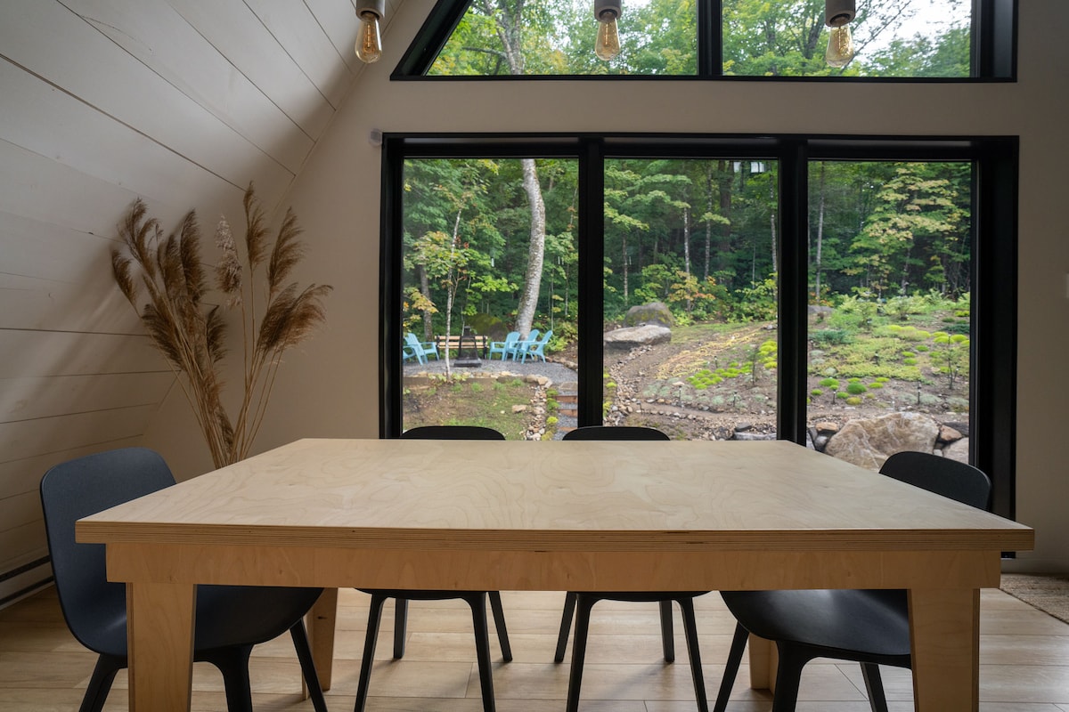 Gaudeix de l'efecte calmant de la natura allotjant-te en aquest xalet contemporani amb abundants finestres al cor del bosc. Tremblant és preciós, independentment de la temporada. Una destinació de somni a l'aire lliure, estaràs a 8 minuts del Mont Blanc i a 20 minuts de Montmblant. Ja sigui per fer senderisme, esquí de fons, raquetes de neu o motos de neu, les rutes són fàcilment accessibles en totes les direccions. Per no parlar del famós P'tit Train du Nord a 3 minuts en cotxe.