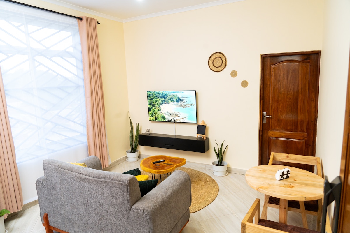 Gaudeix d'un refugi tranquil a 5 minuts a peu de centres comercials, cafeteries i restaurants. Perfecte per a viatgers, parelles, famílies petites, turistes i nòmades digitals. Gaudeix d'un espai tranquil i còmode on preparar-te l'esmorzar i relaxar-te, i explora la ciutat. Accés a llocs clau: • A 15 minuts de l'aeroport d'Arusha • A 10 minuts del Centre de Conferències AICC • A 20 minuts del llac Duluti • A 8 minuts del patrimoni cultural d'Arusha • A 10 minuts de la terminal d'autobusos d'Arusha • A 50 minuts de l'aeroport internacional de Kilimanjaro (KIA)