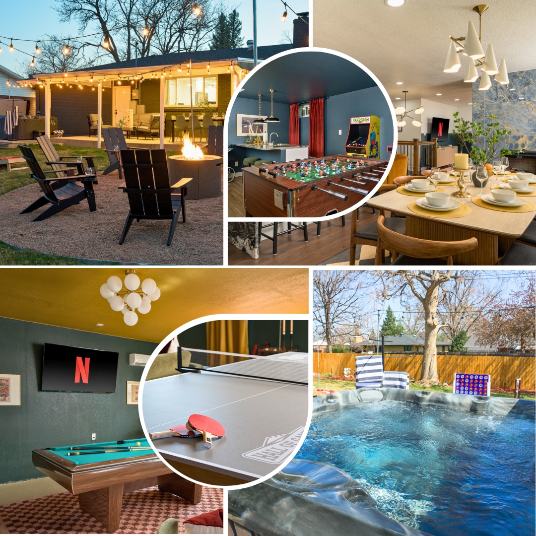 One-of-a-kind Denver retreat, centrally located with private amenities: ◾Steamy Hot tub ◾Exclusive basement speakeasy ◾Movie Room ◾Newly updated ◾Spacious bedrooms ◾Full kitchen ◾Fire pit & multiple outdoor areas ◾12min (walk!) from Olde Town Arvada Only 15mins to Downtown Denver, RiNo, Golden, Red Rocks Amphitheater -- a perfect central location to choose if you plans include a concert, hike, ski trip, game, work / play Downtown, or exploring local restaurants and shops. Reserve your stay now!