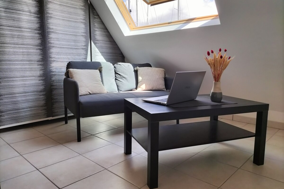 Gaudeix d'un pis totalment nou i elegant de 35 m2 que ocupa una plaça al centre de la ciutat de Muzillac. L'allotjament té una bonica cuina totalment moblada i equipada amb zona de menjador, sala d'estar còmoda amb sofà llit, zona de dormitori agradable i acollidora i bany independent amb vàter. Gaudeix de totes les botigues a peu: pastisseries, restaurants, perruqueries, centre de salut, farmàcies, oficina de correus, bars, tabac, bancs... Mercat els divendres al matí