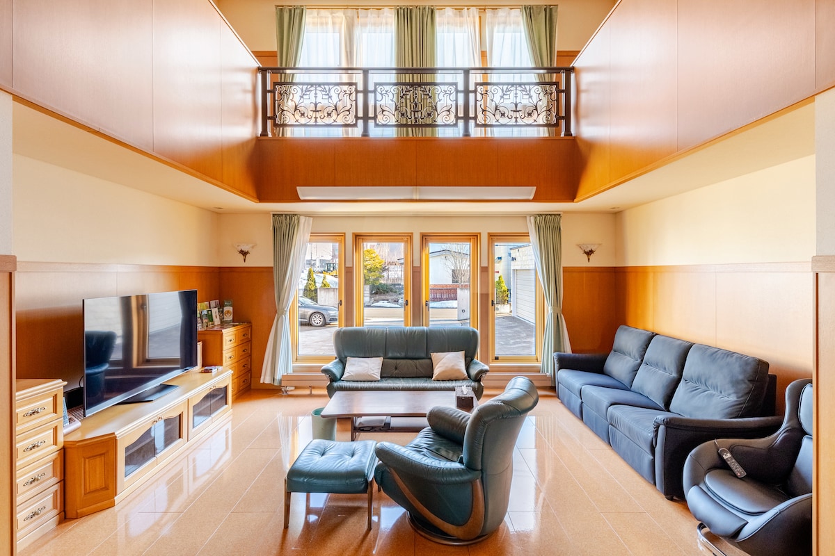 [2 nits o més: 1 taxi des de l'aeroport o l'estació d'Asahikawa gratuït (anada) + 2 cotxes per a més de 7 persones gratuïts] [L'aparcament més proper també és gratuït] * Selecciona una opció Aquest nivell d'Airbnb no existeix!Només n'hi ha uns quants a Asahikawa i Furano. Hi ha un gran aparcament de pagament al costat, perquè puguis descansar tranquil·lament 🅿️🚗 La seguretat està garantida perquè el PIN canvia cada vegada que t'allotges🔐 Aquesta és una habitació enorme que sembla una suite d'hotel de luxe amb vistes al centre comercial de vianants, directament des de l'estació. Hi poden allotjar fàcilment 3 famílies + 2 nadons! [Proposta de venda única] ●7 Eleven a 1 min a peu🏬 4 ●dormitoris, 8 llits🛏️ 3 ●🛁bany, 3🚽 lavabos, 3💄 tocadors ● Mobles de luxe Asahikawa🪑 ● Cinema amb projector 4K de 150 polzades📽️ ●Wifi d'alta velocitat a 500 m⚡️ ●Bressol, cadira, balancí 2, autobús 1👶 ● Totalment equipat amb nevera i gots de vi 🍷 Pots gaudir-ne de manera més assequible que en una suite d'un hotel de luxe. Hi ha una zona davant de l'edifici amb molts bars dissenyats per celebritats famoses, i també hi ha una cafeteria a l'edifici. Hi ha molts restaurants al voltant, així que no hi ha cap problema!Explora amb tothom 🍻