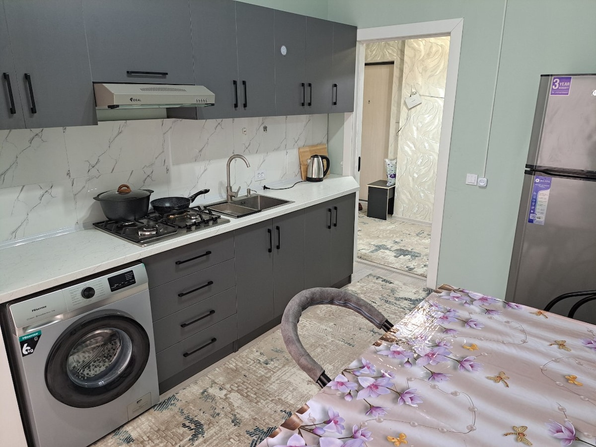 En el dolor d'Andijan!✅ Pis en un edifici nou. Ubicació còmoda, a prop del mercat, supermercats, restaurants,pis amb noves reformes,equipat amb mobles,nevera,rentadora: tot el que necessites per a la teva estada!