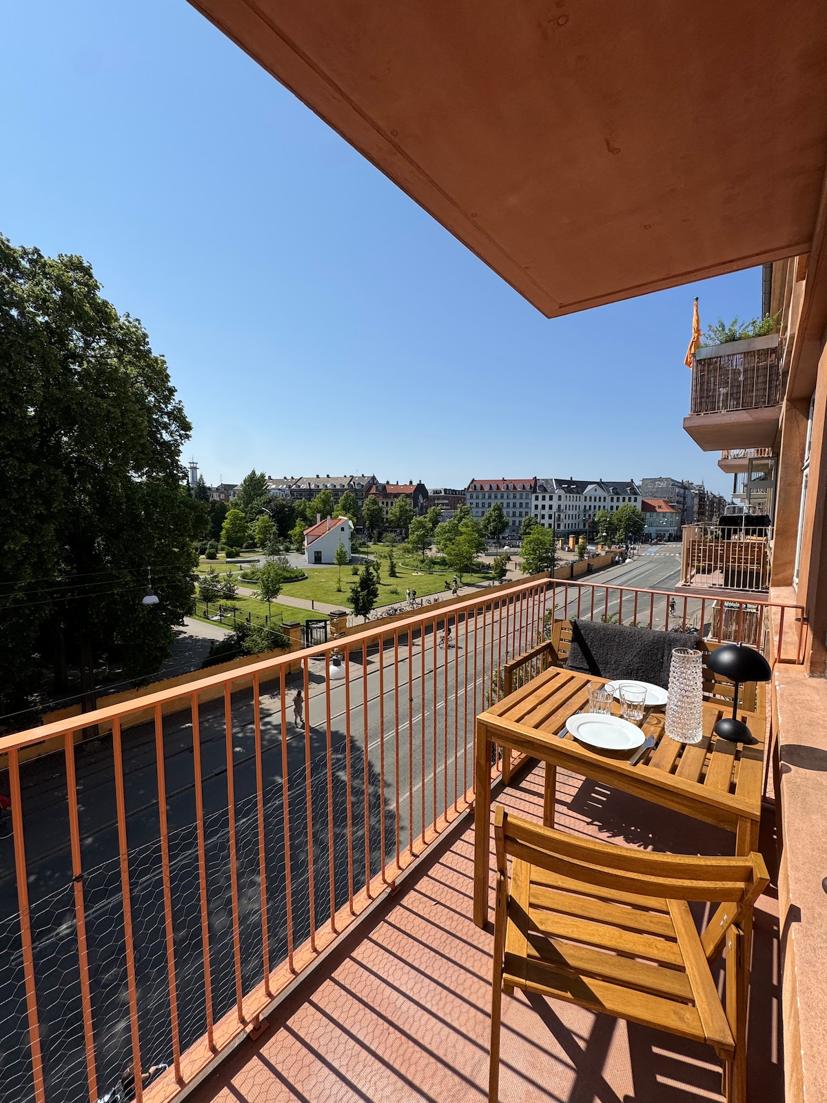Pis rústic al centre de la zona més moderna de Copenhaguen: Nørrebro urbana i moderna. Al cinquè pis, el sol sempre serà el nostre pis gran, lluminós i acollidor. El teu propi balcó privat amb vistes al capvespre i a poca distància a peu dels llocs de la ciutat. Perfecte si vols sentir l'autèntic ambient de Copenhaguen El pis té 125 anys i té tot el que necessites per a estades curtes o llargues còmodes i acollidores, fins i tot accés a un terrat increïble amb vistes a tota la ciutat.