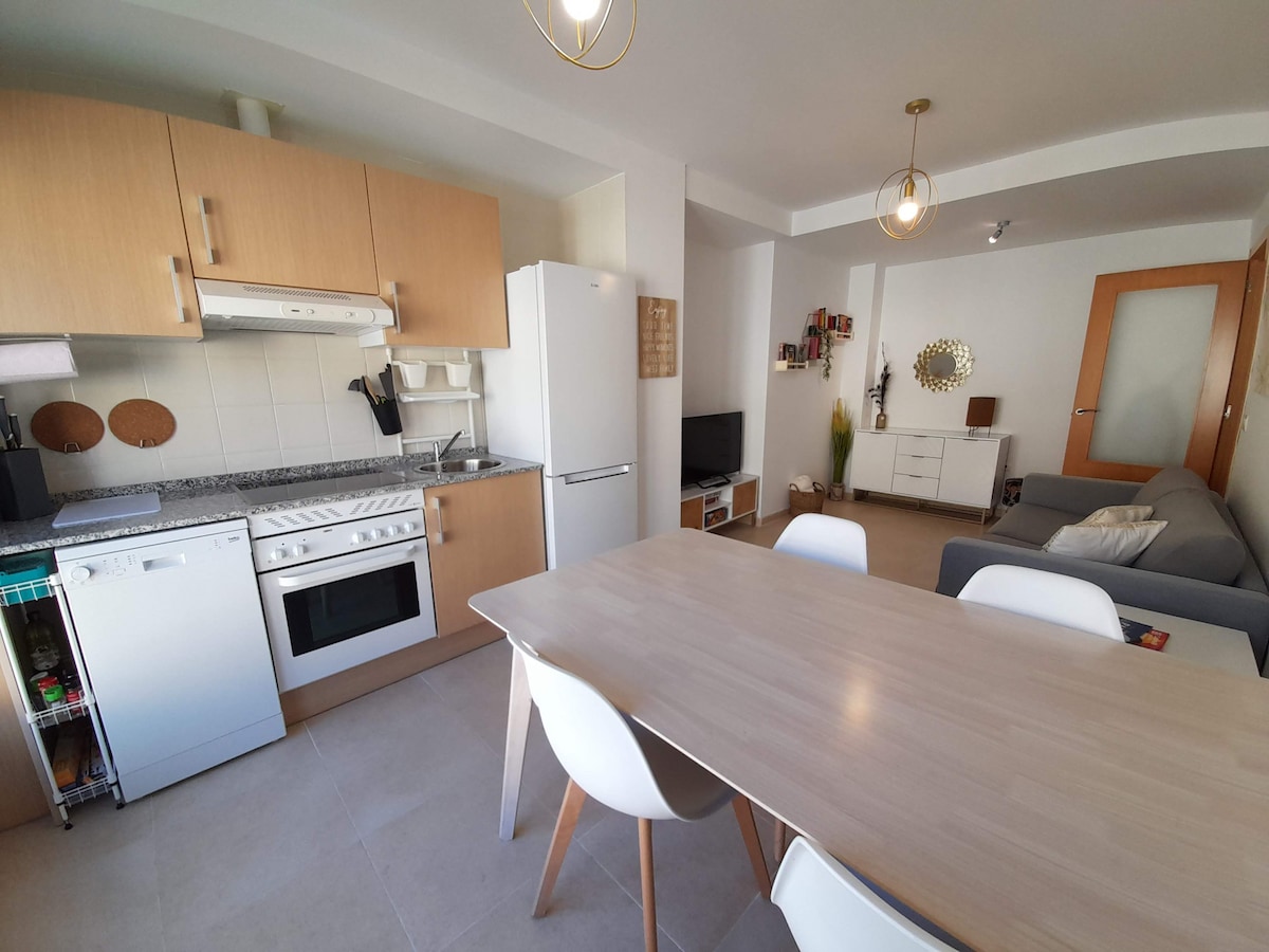 Novament decorat, disposa d'una habitació amb dos llits d'1,05 habitacions,saló amb sofà italià i obertura d'1,35 habitacions molt còmoda. televisió en ambdues habitacions. Ropa de llit i tovalloles Lavadora, calefacció,microones,cafetera,batidora ,tostadora i sucre. Està equipada amb tot el que necessites per gaudir d'unes vacances. Wifi i garatge