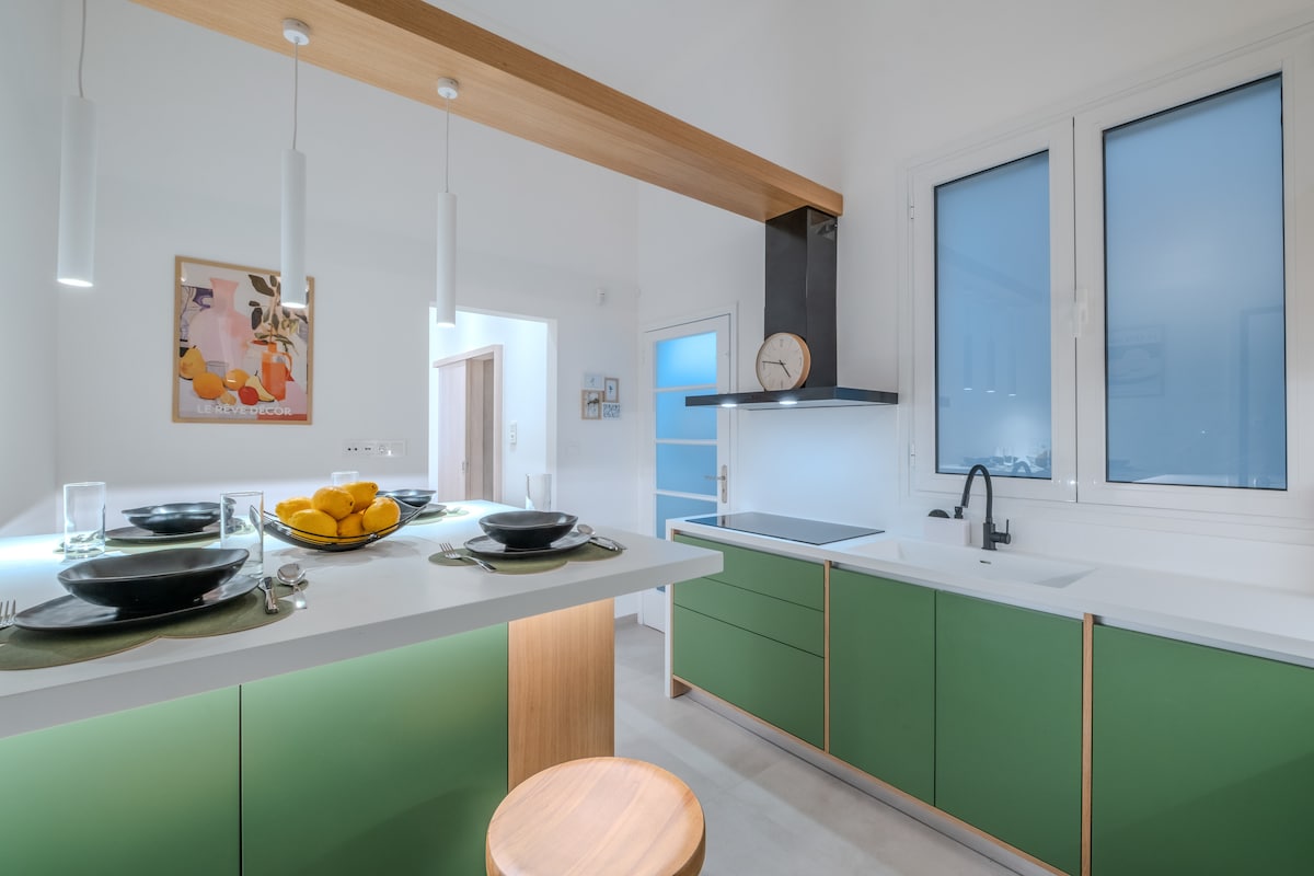 A stylish Bauhaus-inspired apartment on the 1st-floor of a historical 100 yrs old building. Renovated in 2023 and a breath away from Lycabetus hill (less than 1 minute walk). My place is perfect for couples who are keen to find peace and relax in a residential neighbourhoud and want to explore Athens. Equipped with Starlink internet (speed of 300+Mbps). Just 10 mins from Kolonaki and Pagkrati areas and easy stroll to Exarchia and Syntagma square. Breathe and relax in this calm, stylish space.
