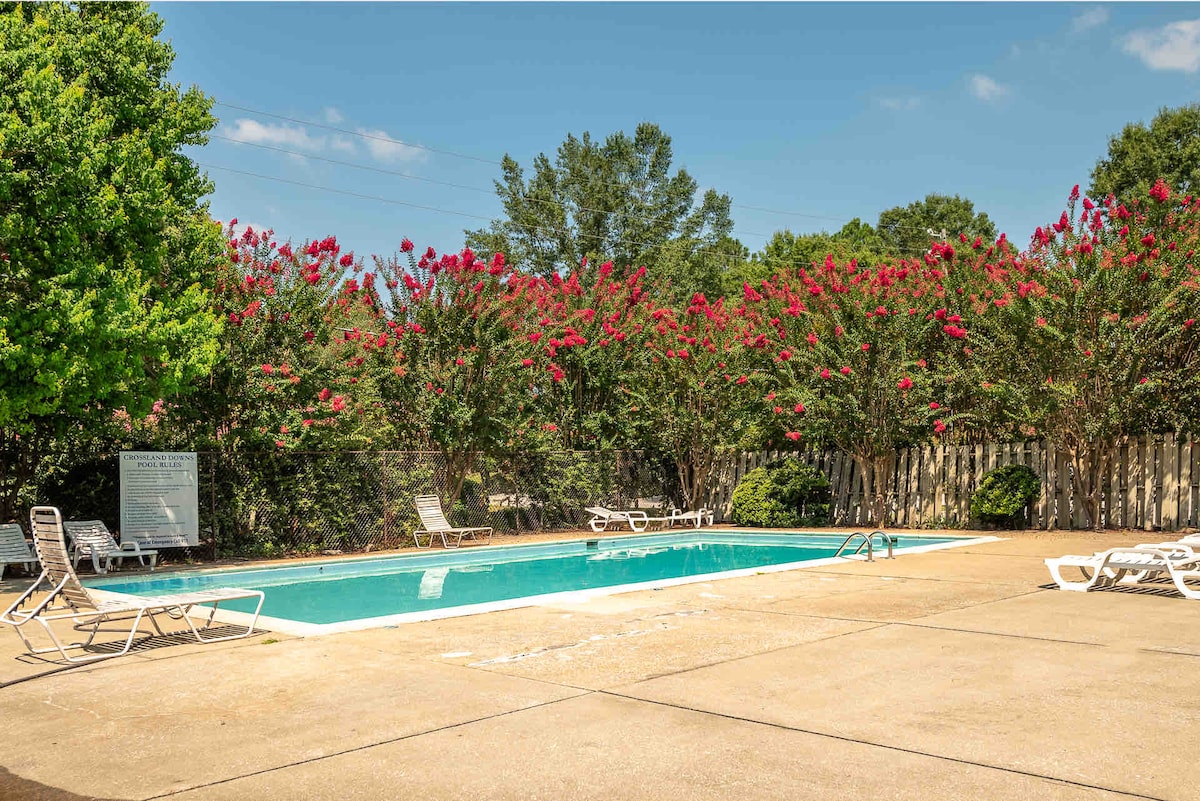 Aquest acollidor apartament d'1 dormitori és perfecte per a una estada a Auburn. Situat a l'altre costat del carrer de l'AU Vet School & Equestrian Center i a menys de 3 quilòmetres de l'estadi Jordan-Hare i del centre de la ciutat, aquest lloc és ideal per a tot l'AU. Característiques que t'encantaran: Llit «queen size» i sofà llit Wifi d'alta velocitat i dos televisors de pantalla plana grans Cuina totalment equipada Rentadora i assecadora a l'allotjament Bany complet amb elements bàsics Piscina comunitària i molt d'aparcament Apartament accessible per a cadires de rodes *sense rampa des de l'aparcament