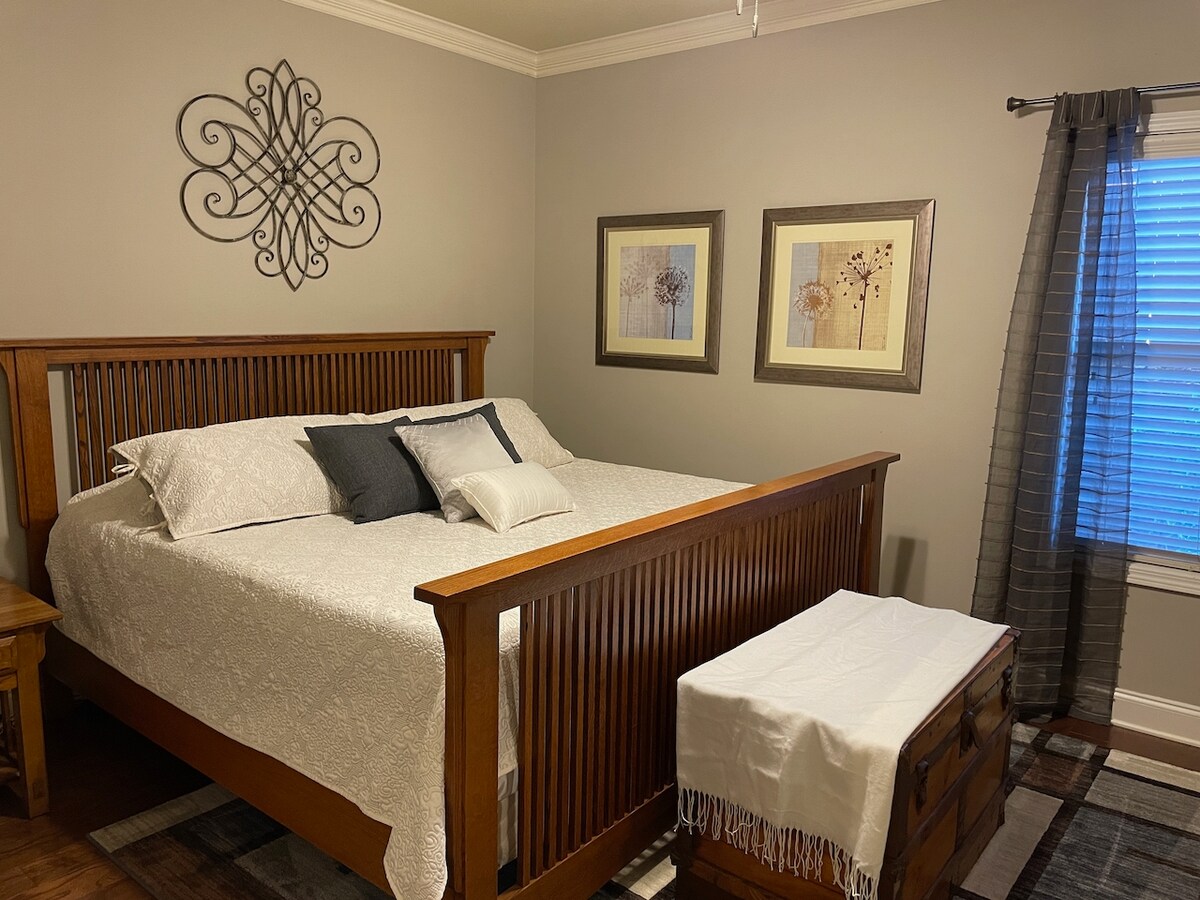 Et donem la benvinguda al nostre tranquil refugi rural situat a prop de Ft Moore/Columbus, GA i Auburn/Opelika, AL. L'espaiosa suite ofereix relaxació i gaudi inigualables, vistes precioses, animals de granja, observació de fauna salvatge i serveis a prop. Veuràs bisons pasturant al costat de la casa, gallines deambulant i escoltaràs el MOOOOOO d'una vaca de tant en tant. Observació d'estrelles i observació d'ocells són activitats excel·lents, però també pots pescar, jugar al frisbee, dards, cornhole, explorar camins...