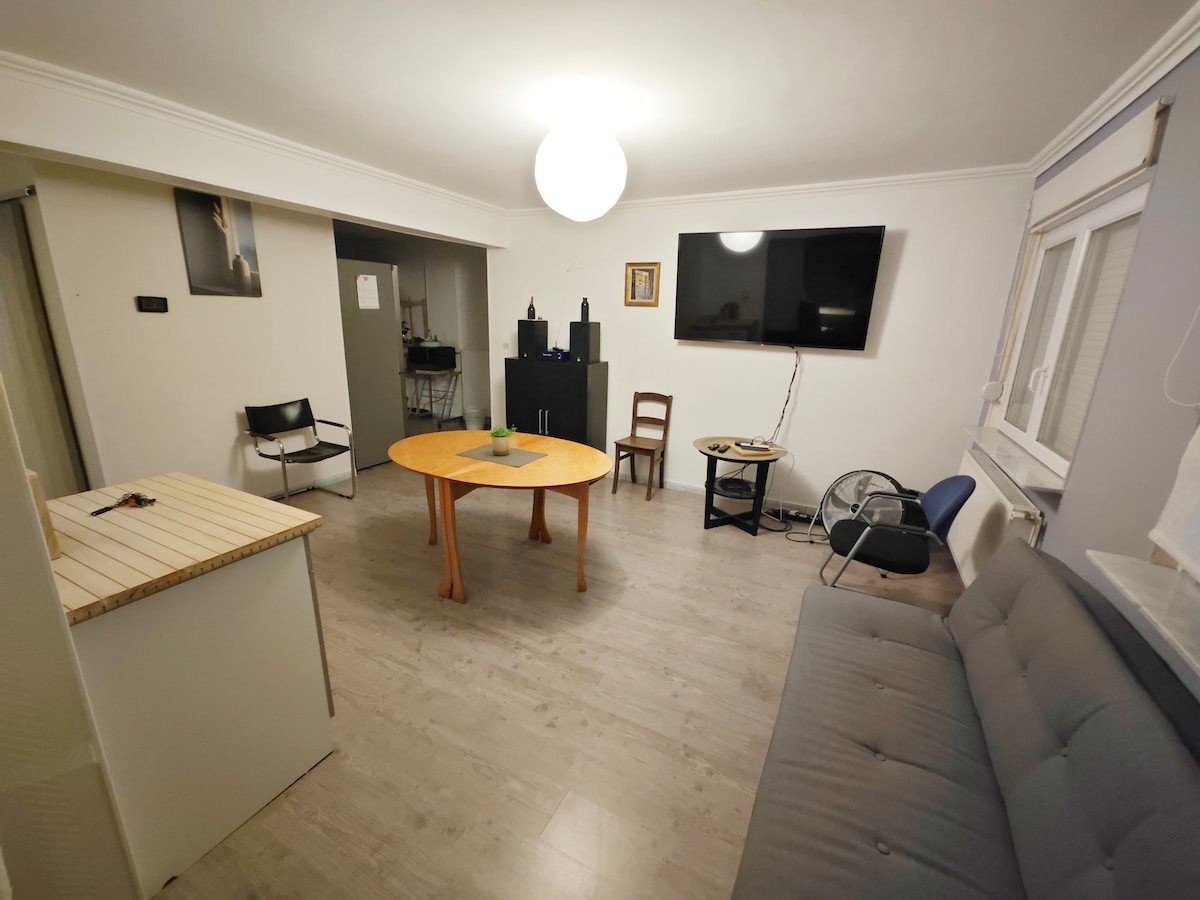 Pis completament renovat al centre de la ciutat d'Esch-sur-Alzette, a la planta baixa, en un carrer tranquil. Hi ha un dormitori independent: llit de matrimoni + sofà llit a la sala d'estar. Tots els equipaments i serveis: wifi, cuina equipada i amb estris, televisor intel·ligent on pots connectar les teves plataformes, i reproductor de Blu-ray i DVD. A 2 minuts del centre i de tots els seus serveis, i a 5 minuts de l'estació de tren. Tren que et porta en minuts a Esch/Belval, a la Rockhal, al centre comercial i a la universitat.