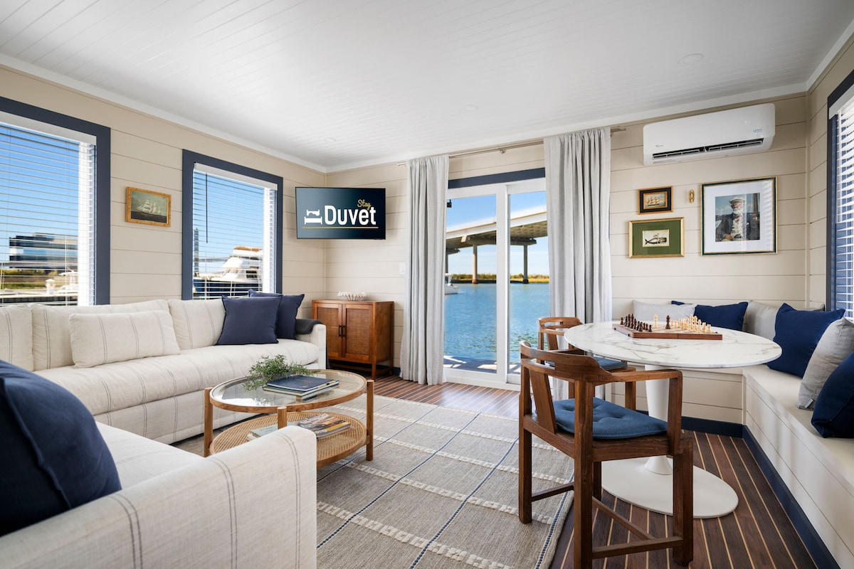 Benvingut a bord del FLOHOM 4, una casa flotant de luxe de disseny modern i elegant atracada a National Harbor Marina a la prestigiosa costa de National Harbor. FLOHOM 4 ofereix unes vistes espectaculars del barri i del riu Potomac i ofereix un fàcil accés a restaurants i entreteniment de primera classe. Des de sortides de sol tranquil·les fins a postes de sol impressionants i l'ambient tranquil de la costa, la teva estada promet una escapada inoblidable plena de relaxació, exploració i una connexió més profunda amb l'aigua.