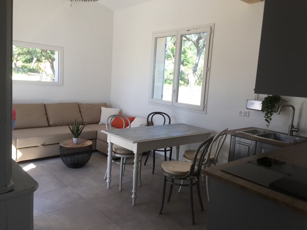 Petita casa nova, en la planta baixa de 4000m2 plantats d'oliveres d'una vil·la principal, terrassa privada, piscina comuna amb 2 unitats d'habitatge, a 5 minuts a peu del poble d'Aups, a 10 minuts en cotxe del llac de Sainte Croix, a les portes de Verdon, i a 40 minuts en cotxe de Ste Maxime.